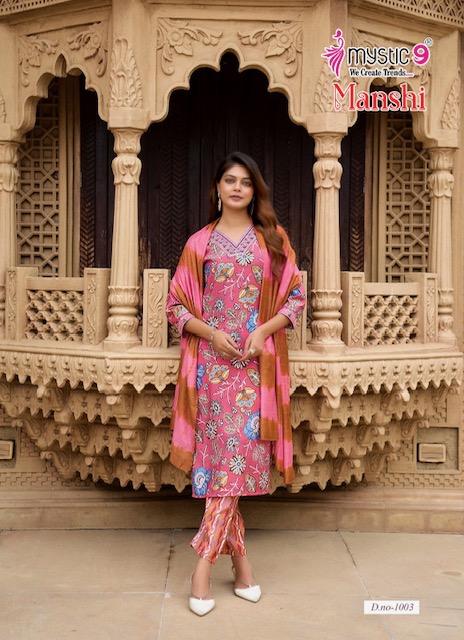 MYSTIC 9 MANSHI VOL 1 contains superior Fabrics, with perfect craftsmanship makes it one most best quality suits catalogue. Best commitment to ungearing quality.