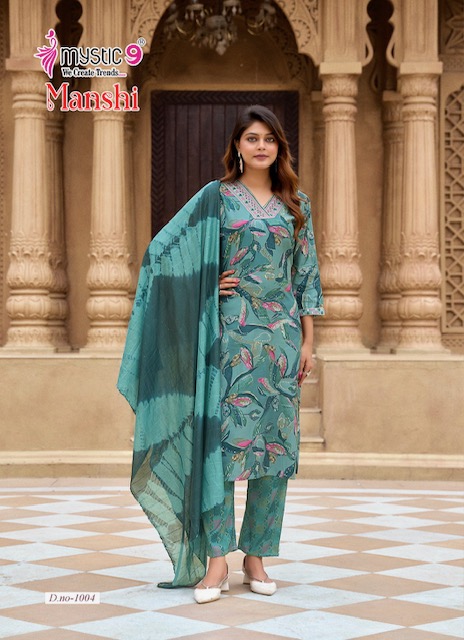 MYSTIC 9 MANSHI VOL 1 suitable for both variety of styles and age groups. Can be made in different styles like Anarkali’s, sleek straight-cut suits, and classic salwar sets for every occasion. Whether you want it during your bride-to-be, a busy professional, or someone who loves ethnic wear, this designer suit makes you centre of extraction to everyone.