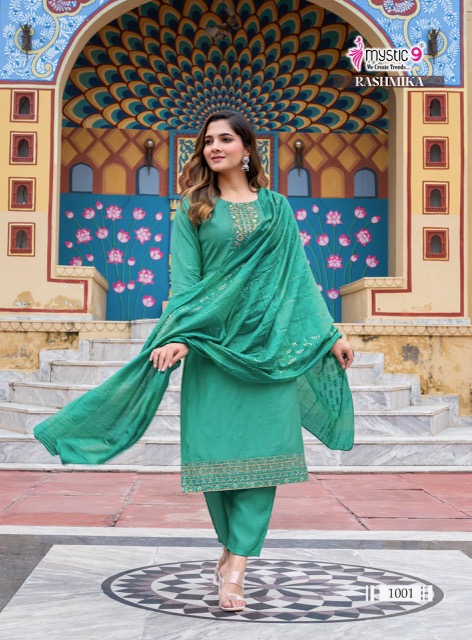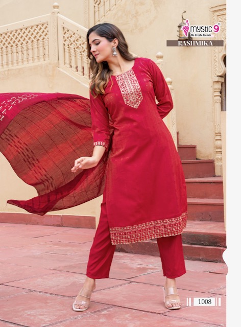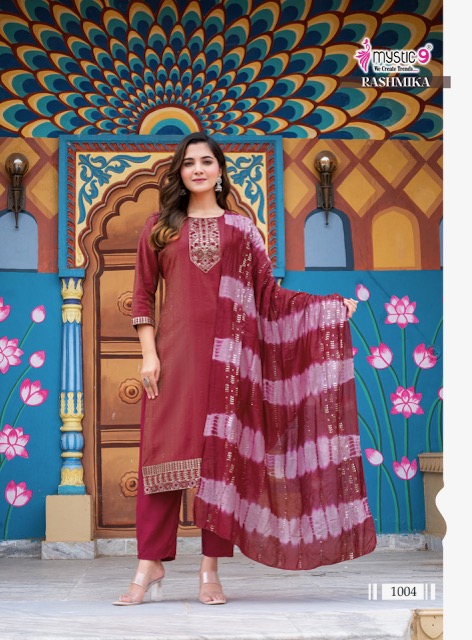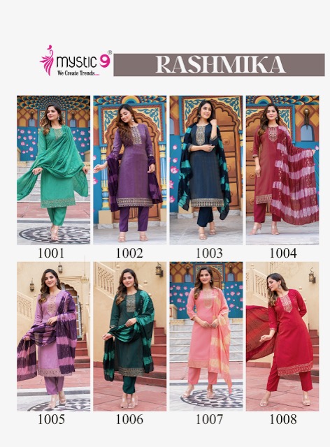 MYSTIC 9 RASHMIKA VOL 1 contains superior Fabrics, with perfect craftsmanship makes it one most best quality suits catalogue. Best commitment to ungearing quality.