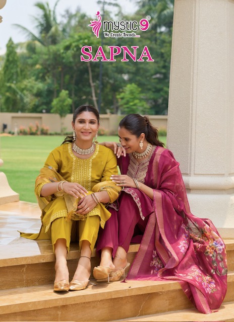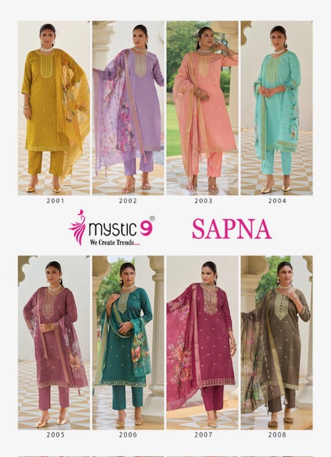 MYSTIC 9 SAPNA contains superior Fabrics, with perfect craftsmanship makes it one most best quality suits catalogue. Best commitment to ungearing quality.
