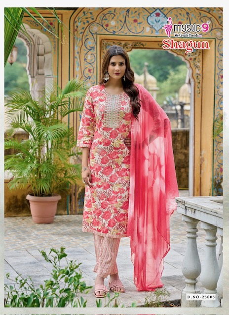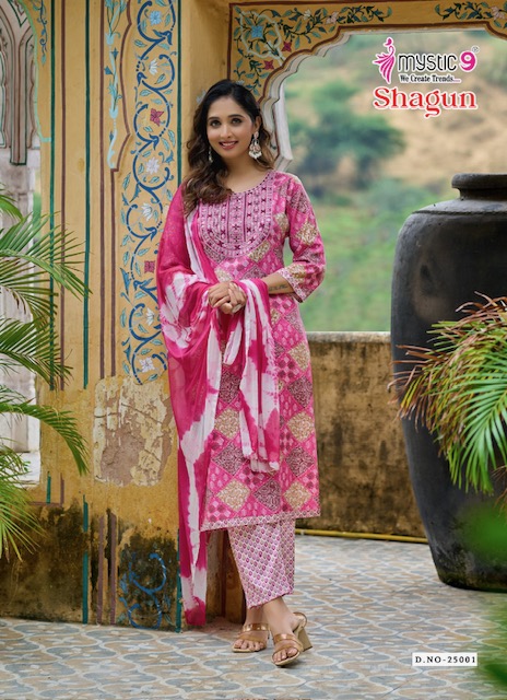 MYSTIC 9 SHAGUN VOL 25 suitable for both variety of styles and age groups. Can be made in different styles like Anarkali’s, sleek straight-cut suits, and classic salwar sets for every occasion. Whether you want it during your bride-to-be, a busy professional, or someone who loves ethnic wear, this designer suit makes you centre of extraction to everyone.