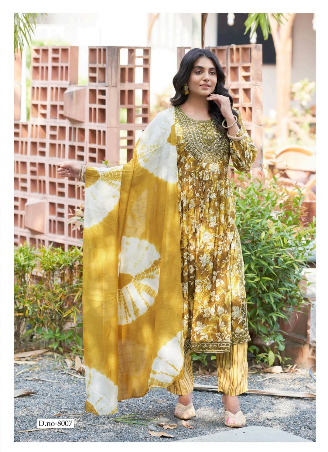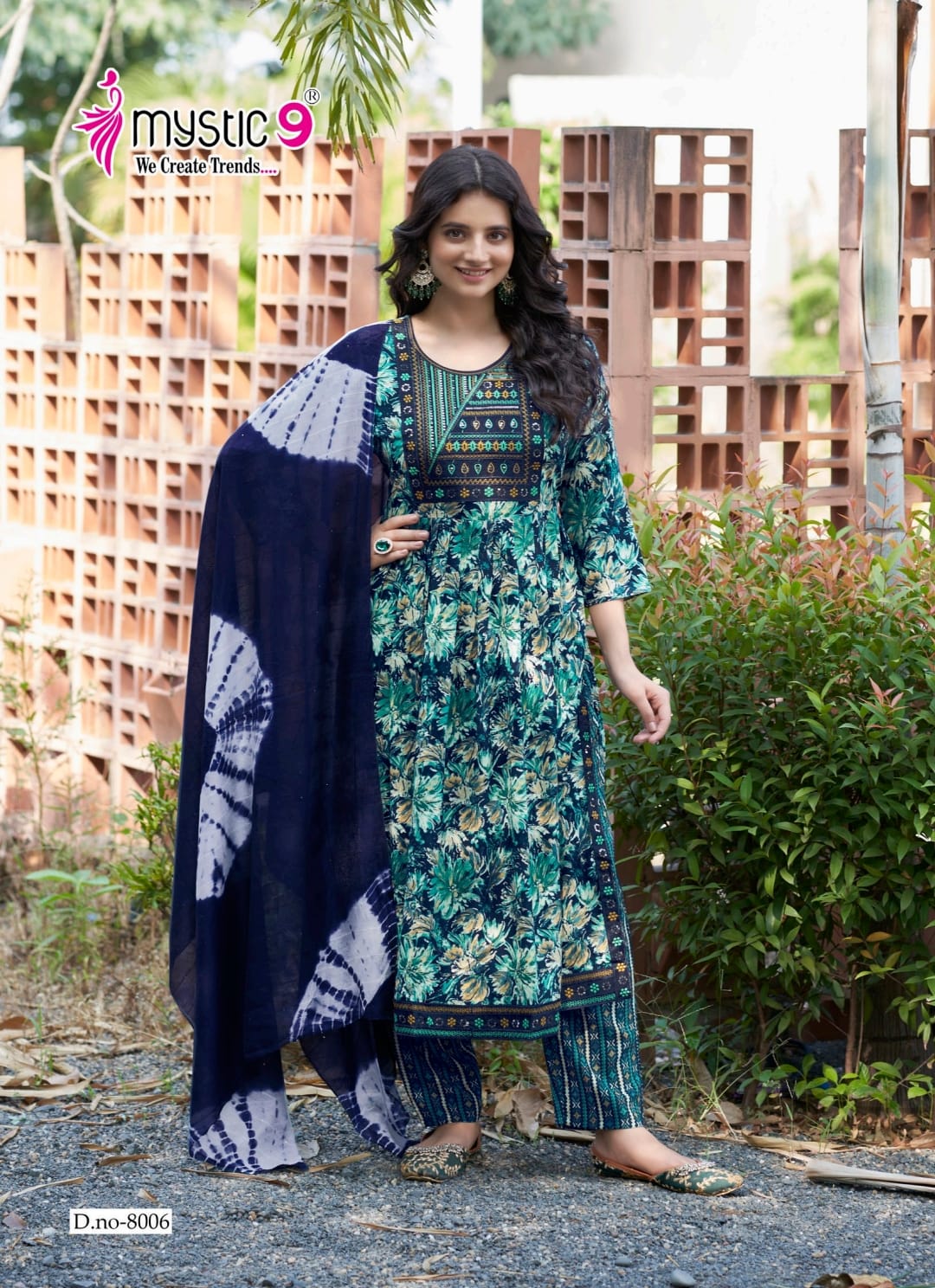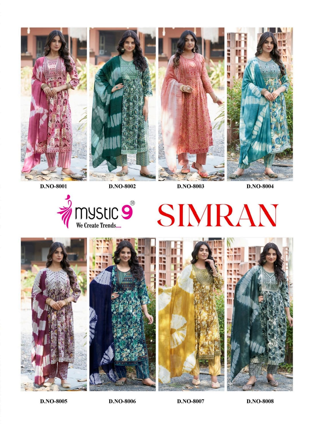 MYSTIC 9 SIMRAN VOL 1 contains superior Fabrics, with perfect craftsmanship makes it one most best quality suits catalogue. Best commitment to ungearing quality.