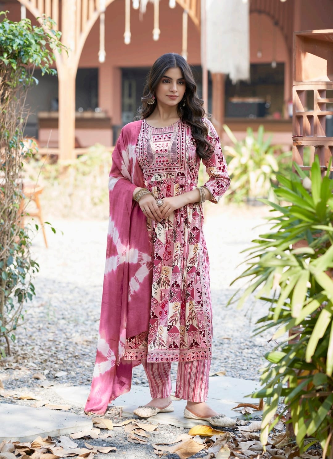 Choose cotton fabric suit with its unique prints and soft pastel shades for a beautiful better vibe. Which can be Paired with sandals and simple earrings for beautiful amazing looks.