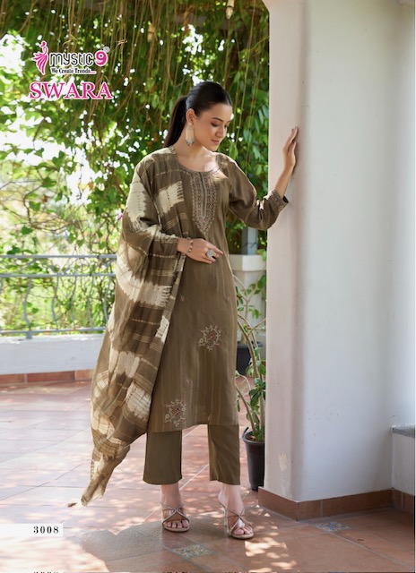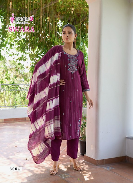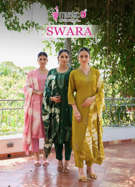 MYSTIC 9 SWARA VOL 3 contains superior Fabrics, with perfect craftsmanship makes it one most best quality suits catalogue. Best commitment to ungearing quality.