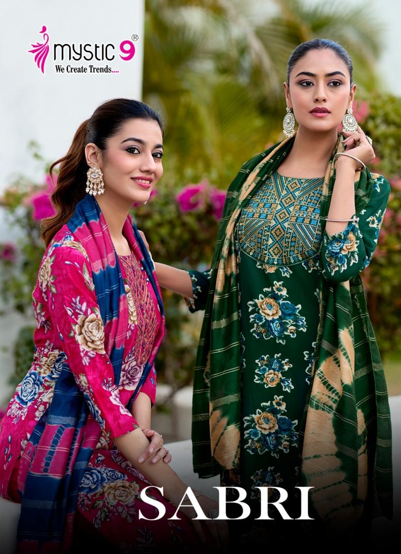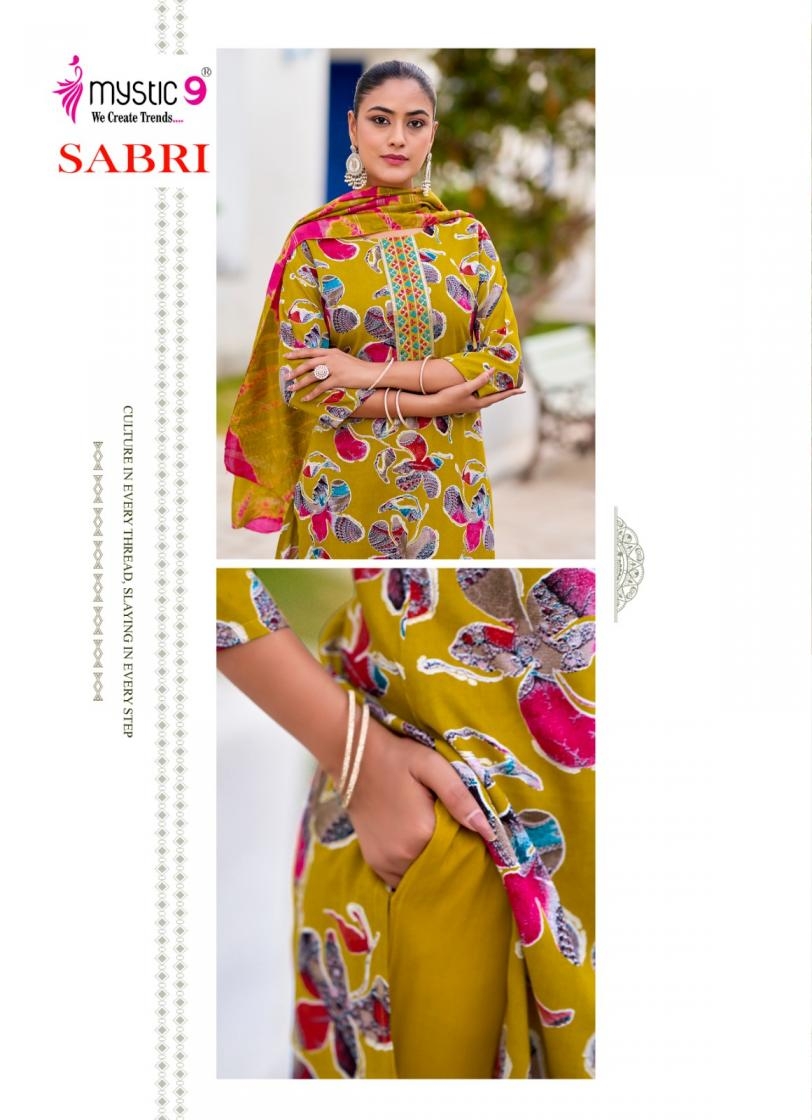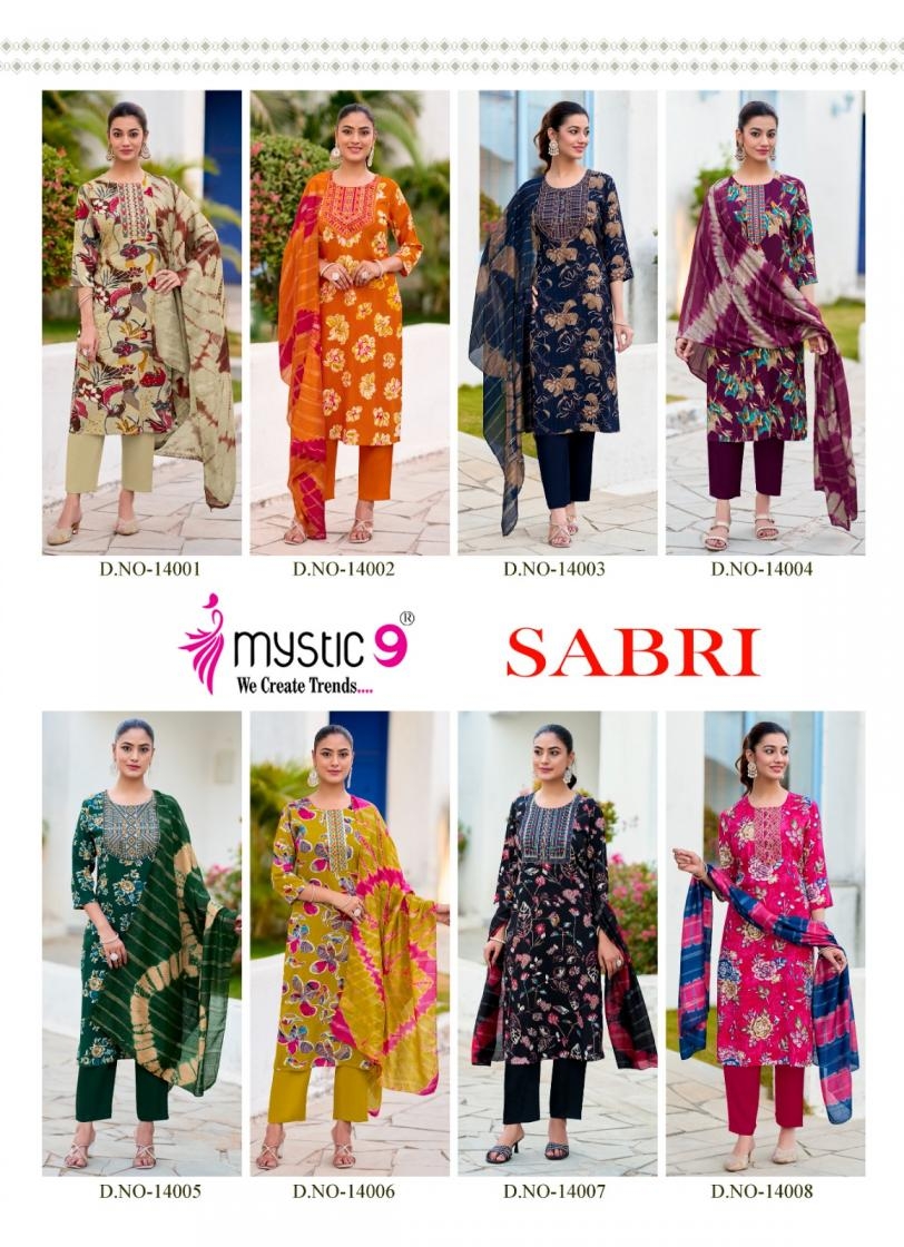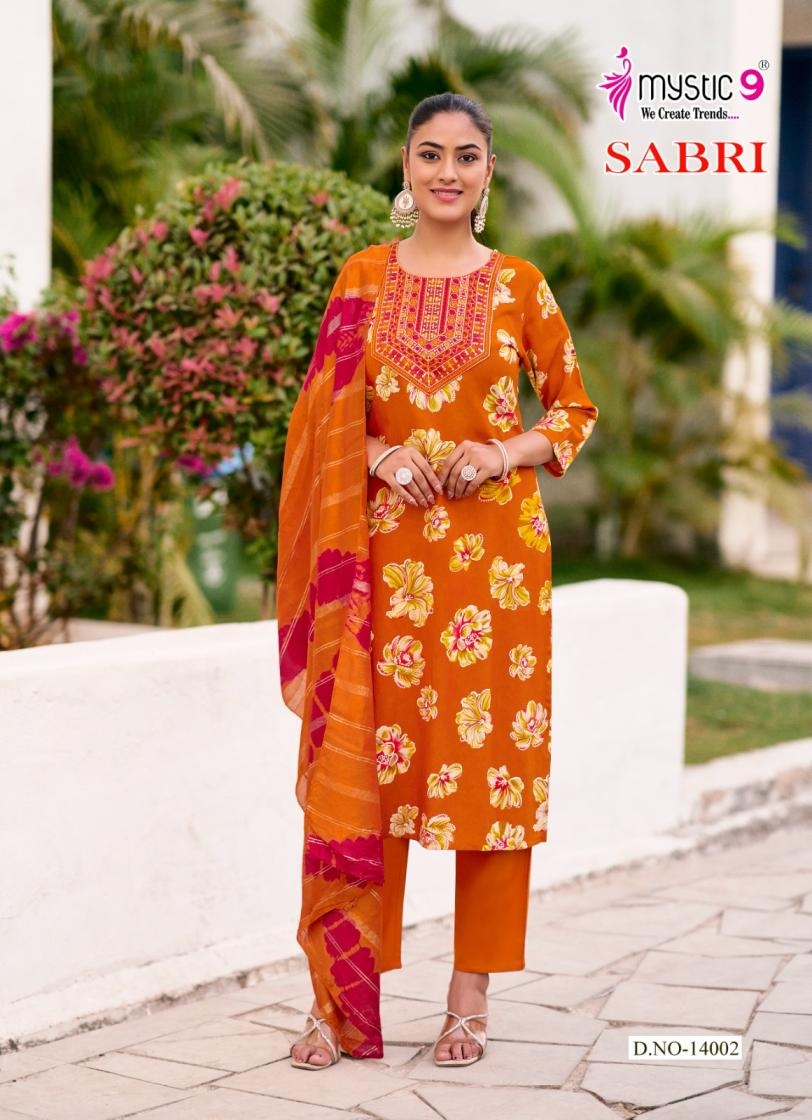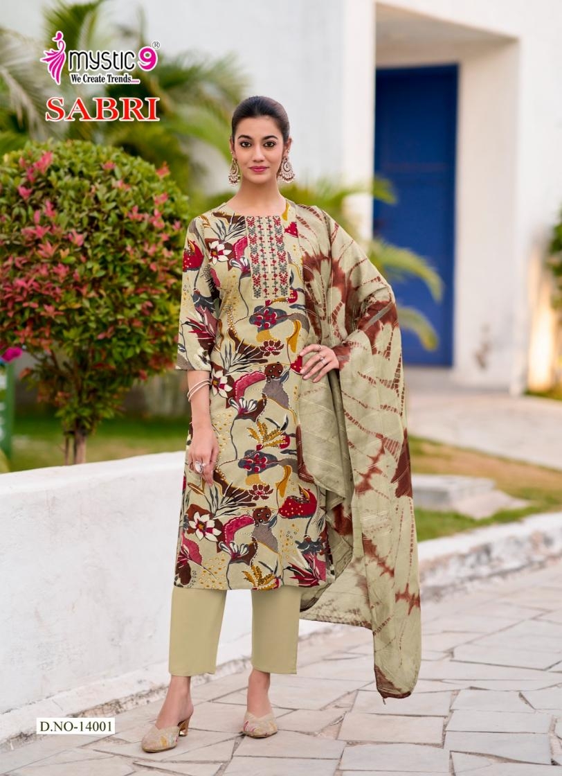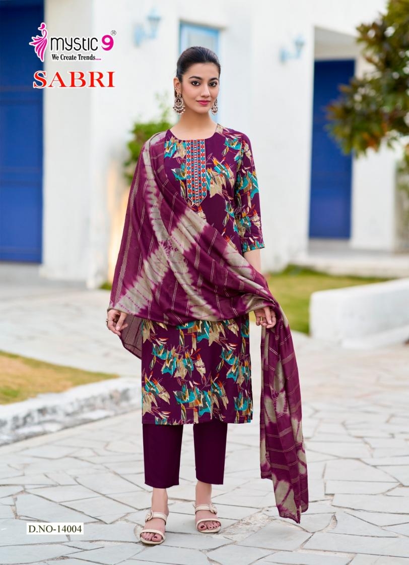 mystic9 sabri vol 14 series 14001-14008 rayon foil print readymade suit
