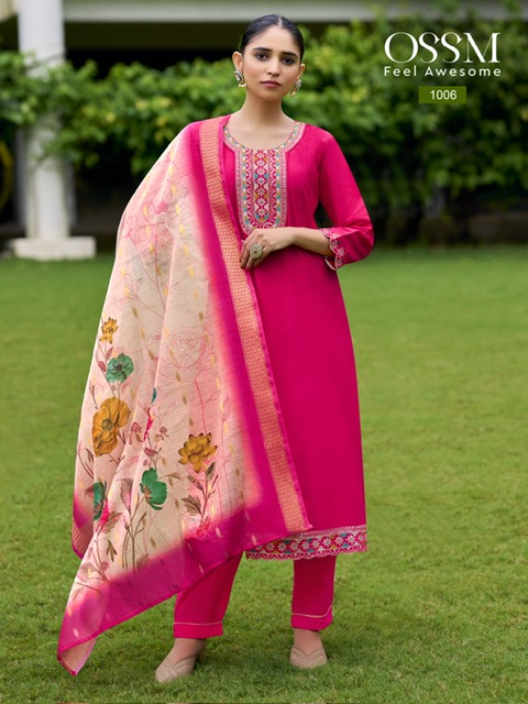 OSSM RESHAM VOL 2 suitable for both variety of styles and age groups. Can be made in different styles like Anarkali’s, sleek straight-cut suits, and classic salwar sets for every occasion. Whether you want it during your bride-to-be, a busy professional, or someone who loves ethnic wear, this designer suit makes you centre of extraction to everyone.