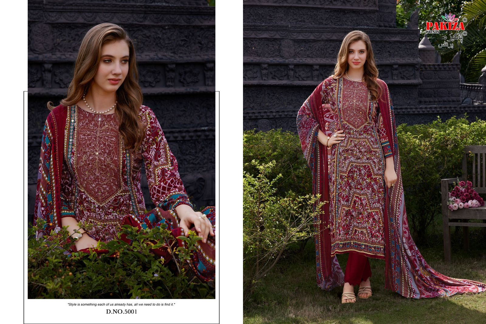 Whether you’re shopping for a festive celebration, a wedding function, or simply updating your ethnic wardrobe, the PAKIZA PRINTS NAWAZISH VOL 5 collection promises to add an effortless charm to your look. With vibrant prints, luxurious fabrics, and intricately designed patterns, each suit tells a story of elegance and sophistication.