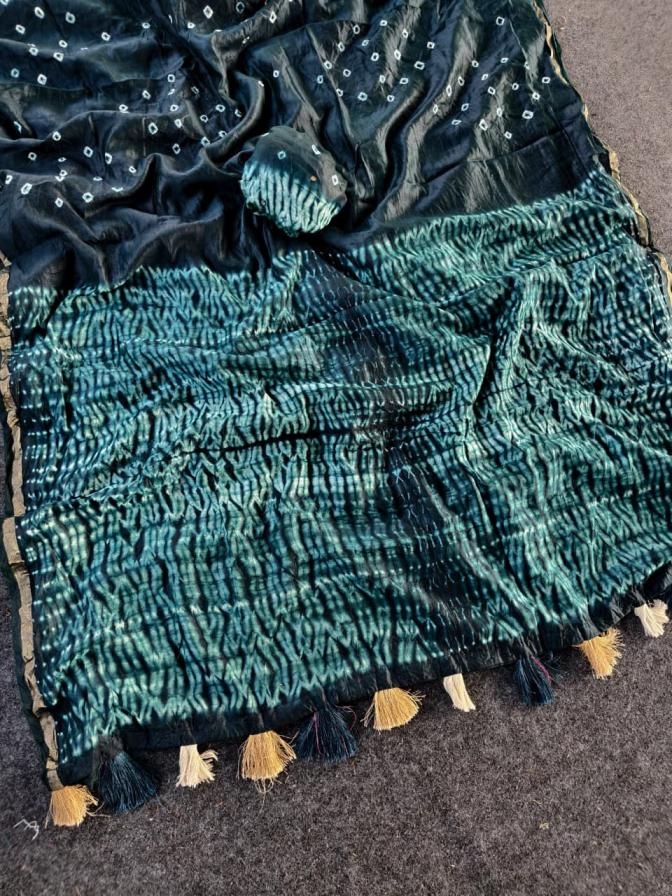Teamed with bandhej sibori blouse