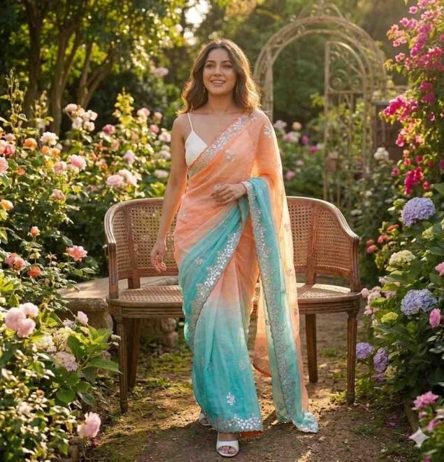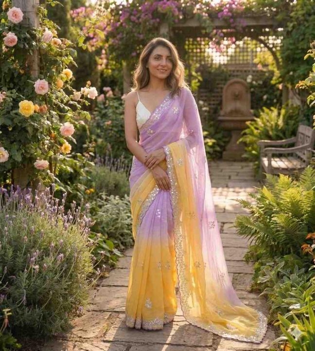 Saree : Premium Pixel Crush with Cutdana And Moti with sequins work