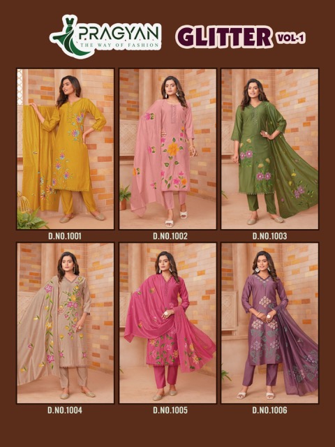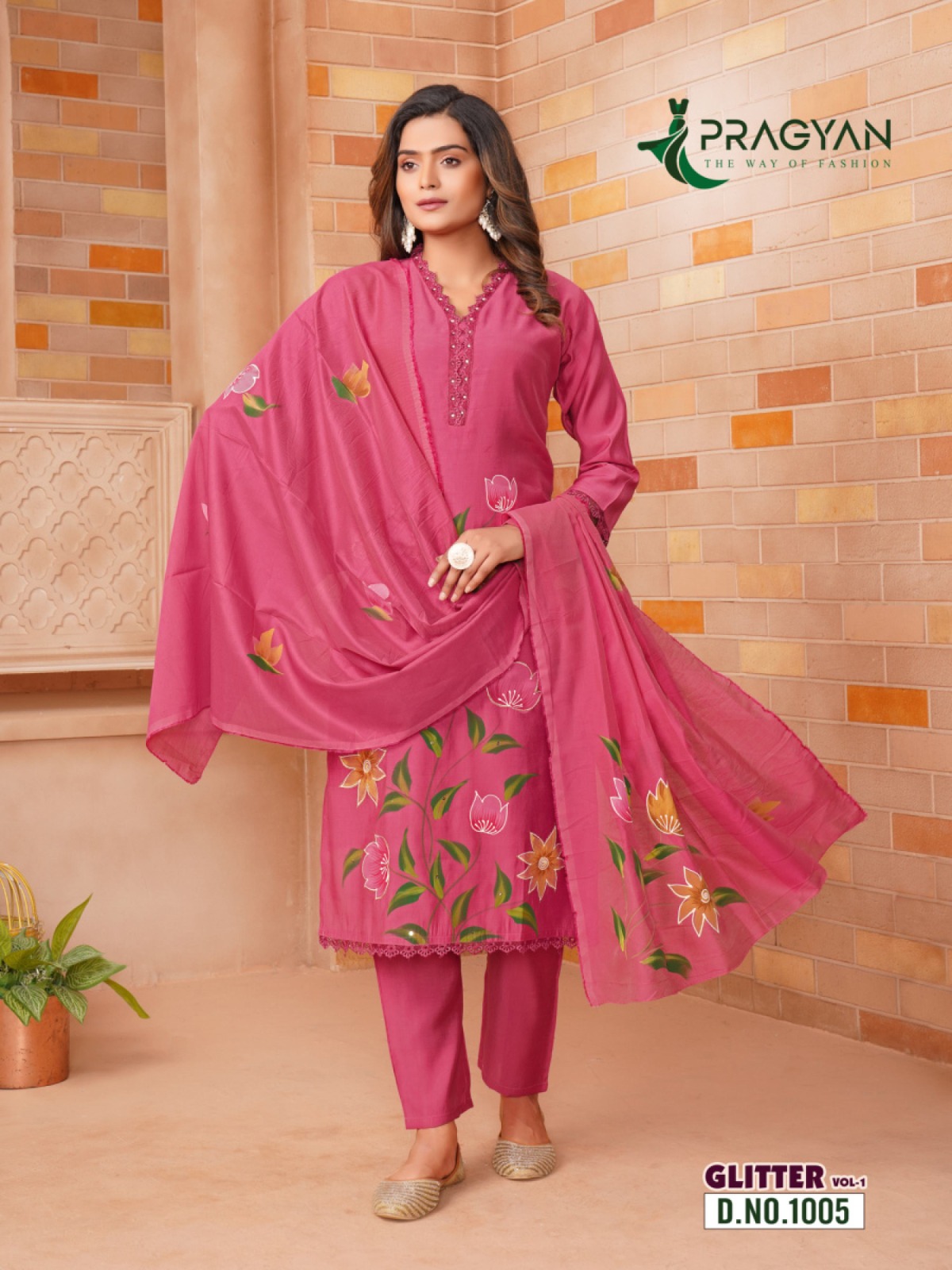 PRAGYAN GLITTER VOL 1 ROMAN SILK READYMADE KURTI