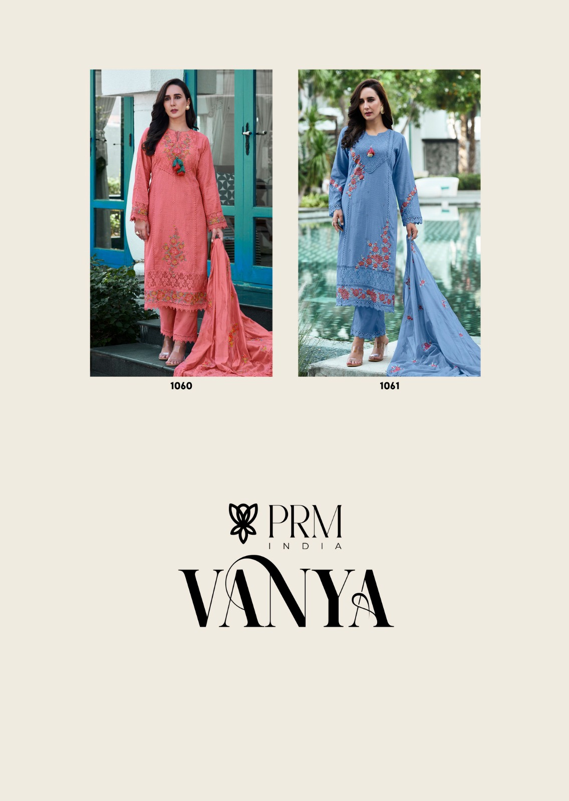 PRM INDIA VANYA contains superior Fabrics, with perfect craftsmanship makes it one most best quality suits catalogue. Best commitment to ungearing quality.