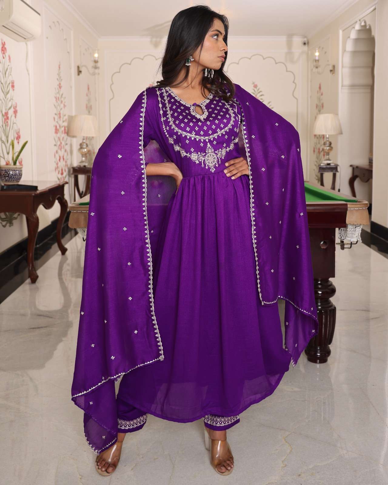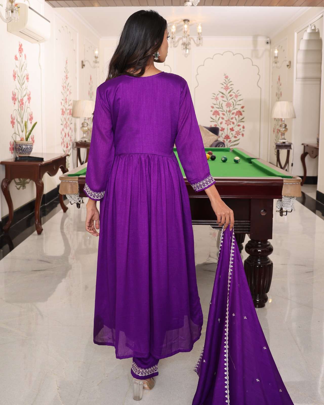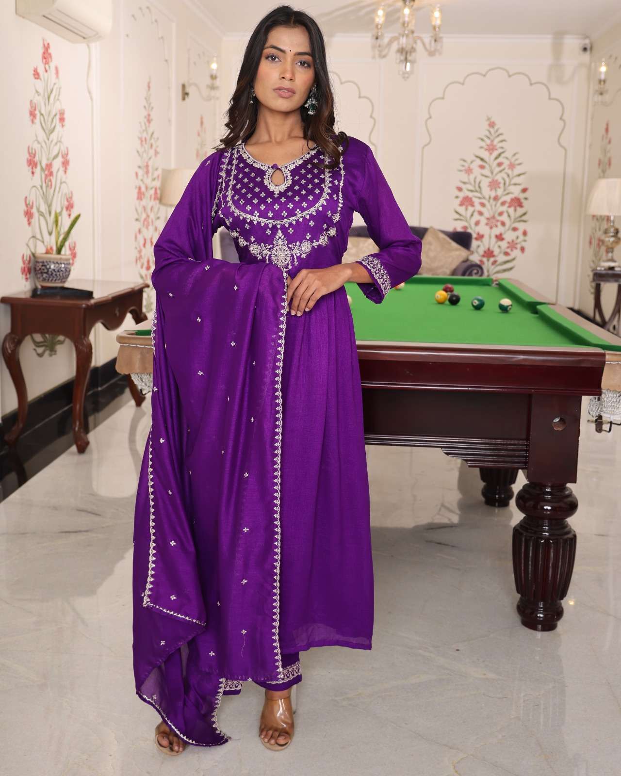 Finally, Fashion is not just clothing but it is much more than that. It is a way to express your identity. With PURPLE HIT SOFT SILK WITH EMBROIDERY WORK single readymade suit, you are not just wearing a suit, but you will feel more confidence, heritage, and a rich story of craftsmanship that has been going through out generations.