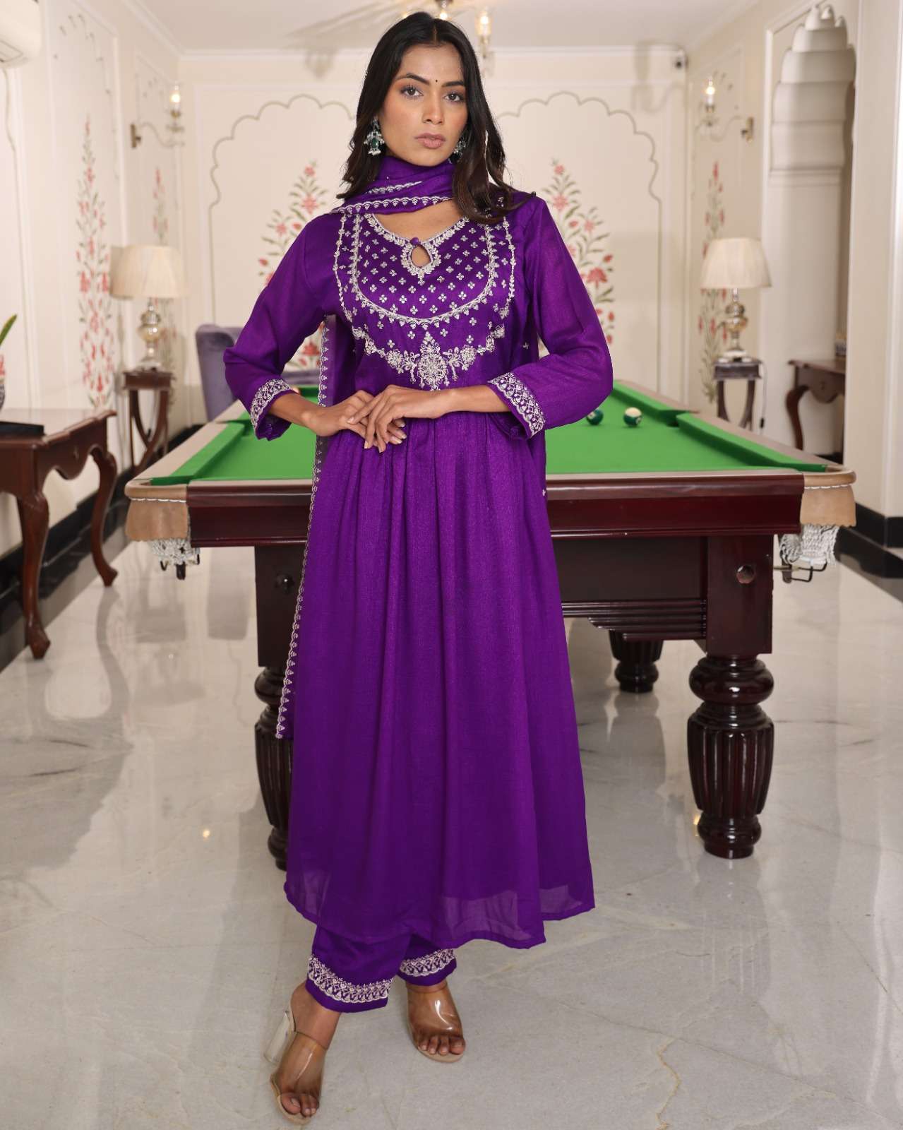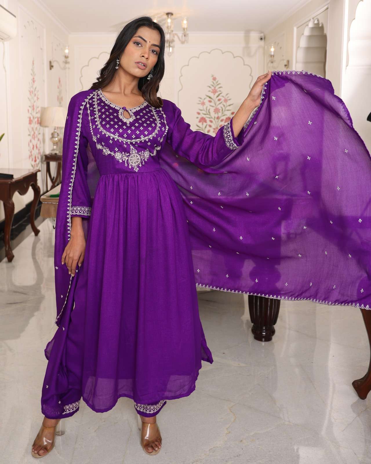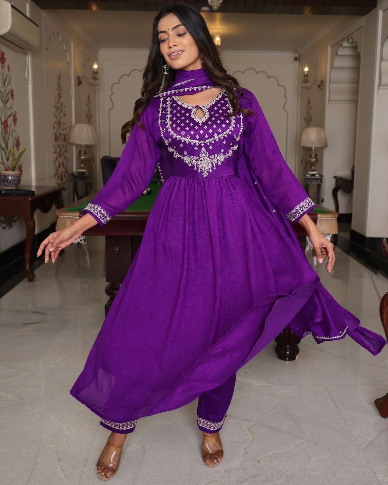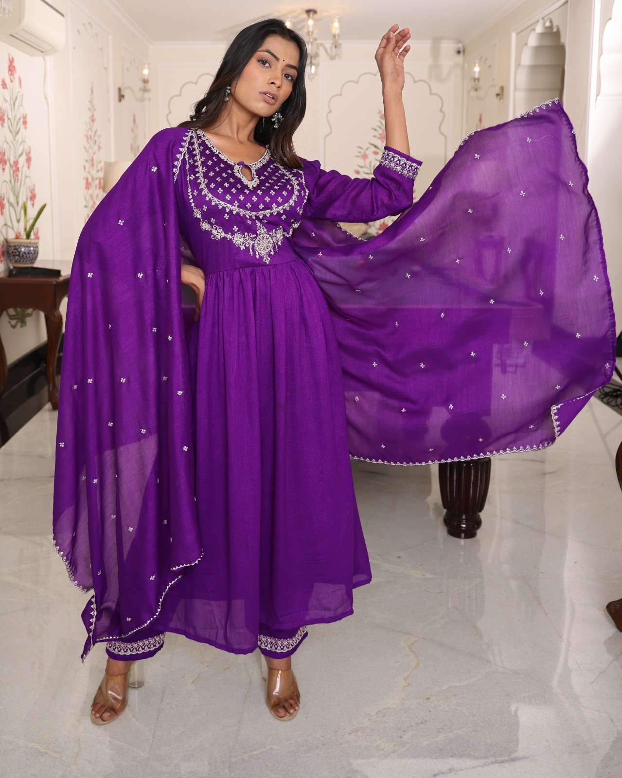 Finally, Fashion is not just clothing but it is much more than that. It is a way to express your identity. With PURPLE HIT SOFT SILK WITH EMBROIDERY WORK single readymade suit, you are not just wearing a suit, but you will feel more confidence, heritage, and a rich story of craftsmanship that has been going through out generations.