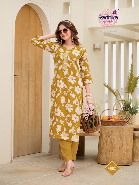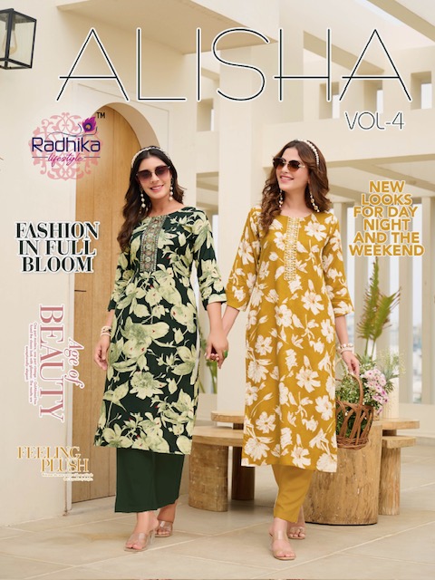 Collection Trend Highlights The RADHIKA LIFESTYLE ALISHA VOL 4 collection keeps the classic charm of its predecessors while continuously introducing new pieces to stay aligned with the latest trends.