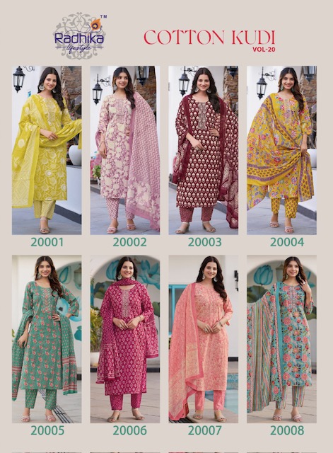 From graceful anarkalis to versatile straight-cut suits and classic salwar sets, RADHIKA LIFESTYLE COTTON KUDI VOL 20 caters to a wide range of style preferences and age groups. Whether you’re a bride-to-be, a working professional, or someone looking for a statement ethnic outfit, there’s something for everyone in this designer edit.