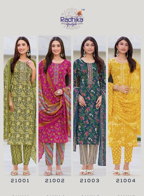 RADHIKA LIFESTYLE COTTON KUDI VOL 21 has a suit design for every event, whether you are going for formal gathering or a casual get-together you can style the collection: