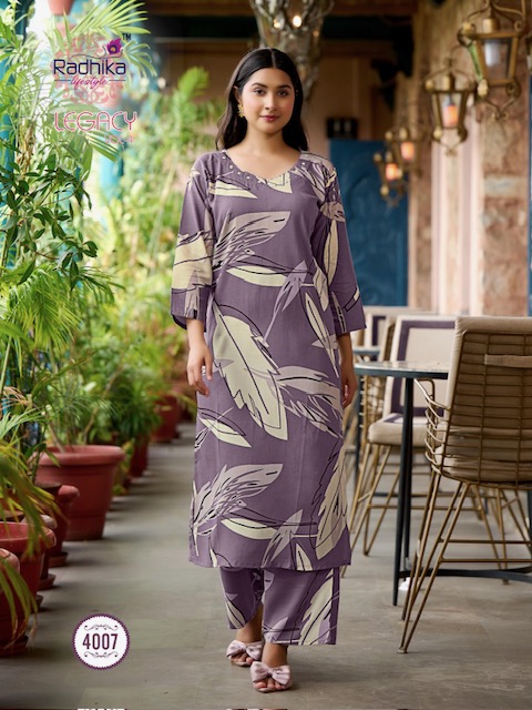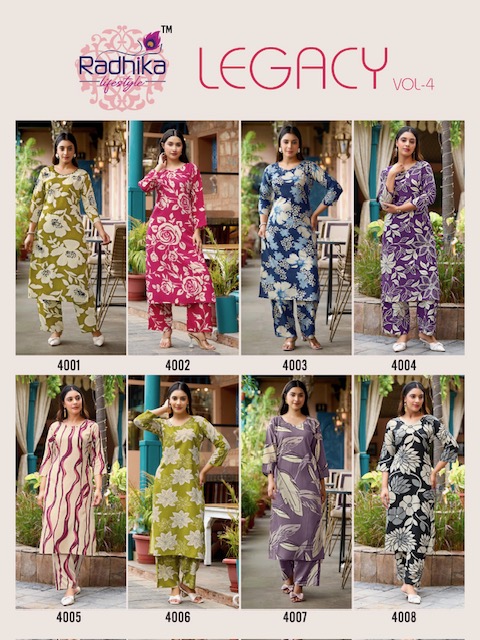 RADHIKA LIFESTYLE LEGACY VOL 4 contains superior Fabrics, with perfect craftsmanship makes it one most best quality suits catalogue. Best commitment to ungearing quality.