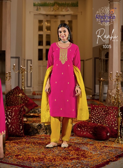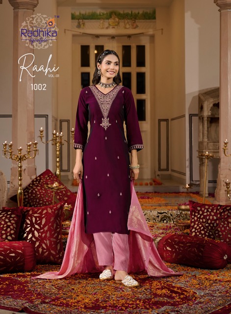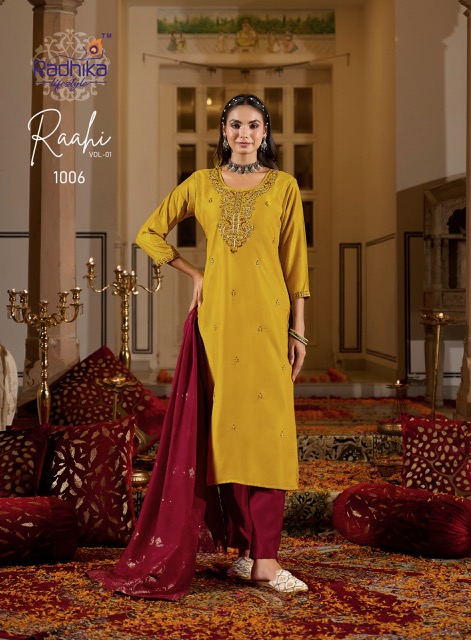RADHIKA LIFESTYLE RAAHI VOL 1 contains superior Fabrics, with perfect craftsmanship makes it one most best quality suits catalogue. Best commitment to ungearing quality.