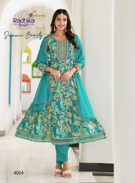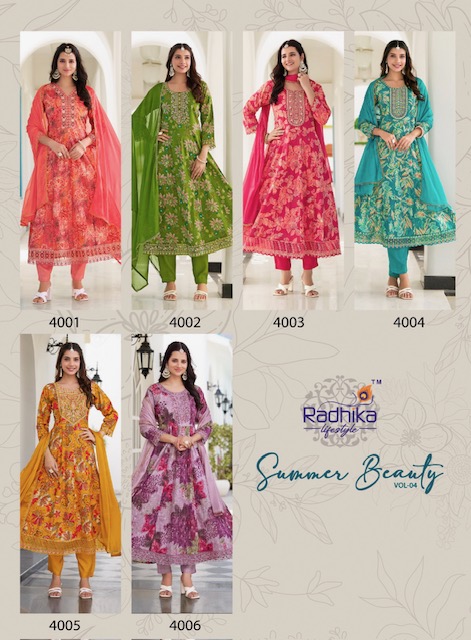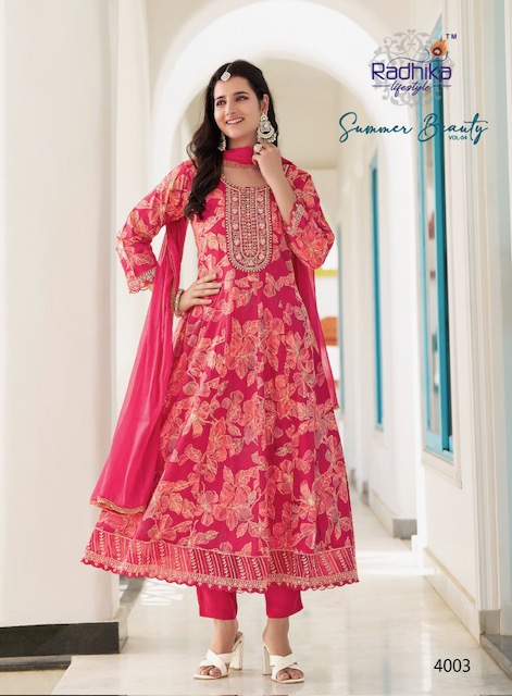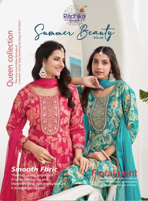 From graceful anarkalis to versatile straight-cut suits and classic salwar sets, RADHIKA LIFESTYLE SUMMER BEAUTY VOL 4 caters to a wide range of style preferences and age groups. Whether you’re a bride-to-be, a working professional, or someone looking for a statement ethnic outfit, there’s something for everyone in this designer edit.