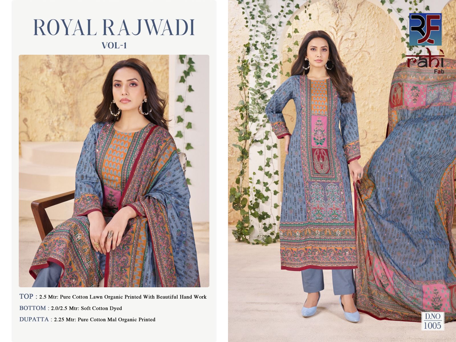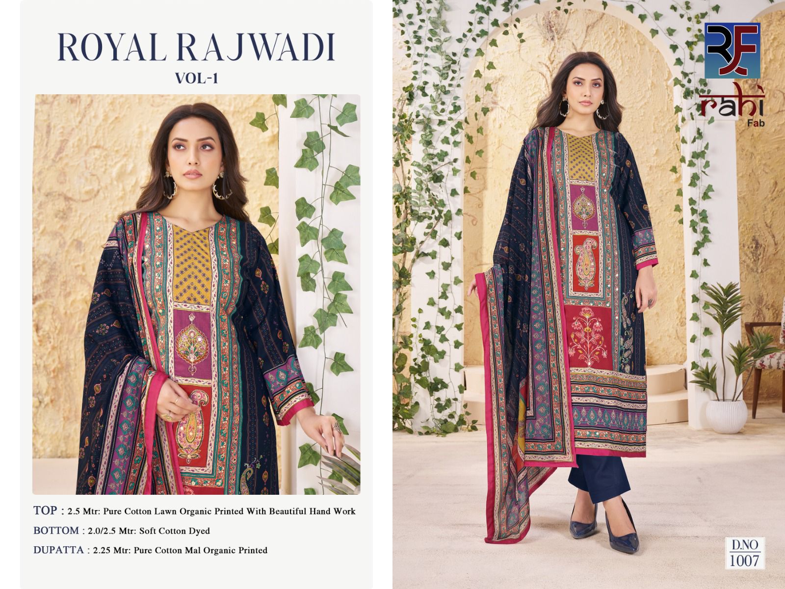 Whether you’re shopping for a festive celebration, a wedding function, or simply updating your ethnic wardrobe, the RAHI FAB ROYAL RAJWADI VOL 1 collection promises to add an effortless charm to your look. With vibrant prints, luxurious fabrics, and intricately designed patterns, each suit tells a story of elegance and sophistication.