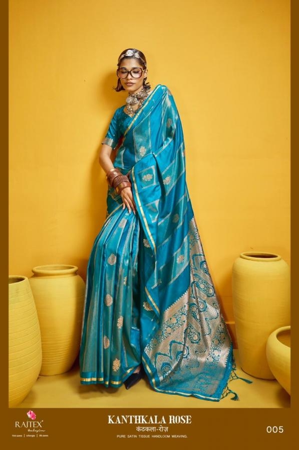 A Designer Collection that speaks about Volumes. rajtex kanthkala rose series 001-006 satin handloom weaving saree catalogue is more than just a clothing collection; it speaks the story of fashion, comfort, and culture.