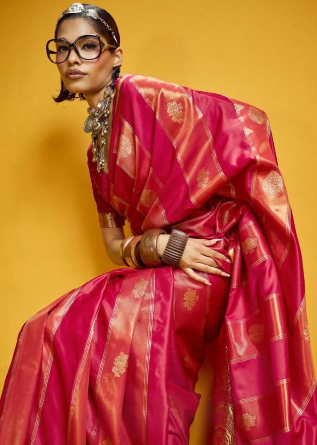 rajtex kanthkala rose series 001-006 satin handloom weaving saree has a suit design for every event, whether you are going for formal gathering or a casual get-together you can style the collection: