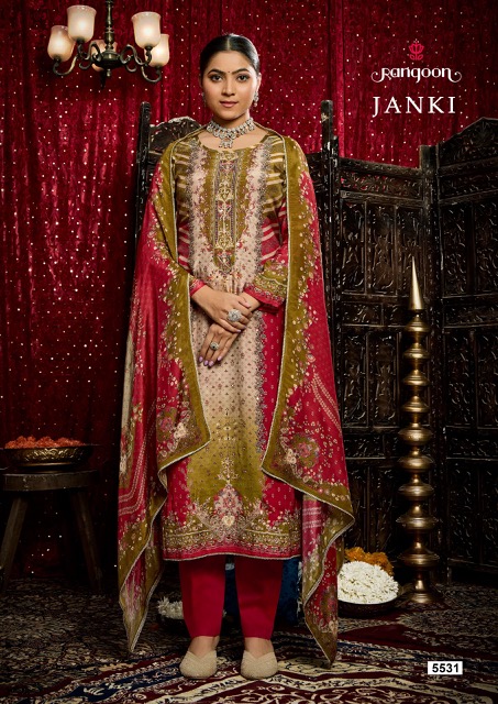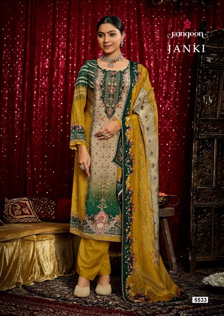 RANGOON JANKI contains superior Fabrics, with perfect craftsmanship makes it one most best quality suits catalogue. Best commitment to ungearing quality.