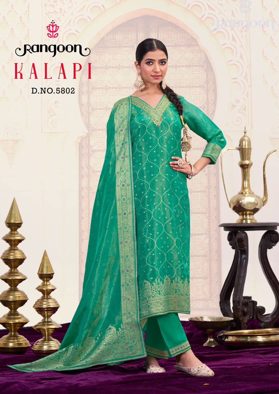 RANGOON KALAPI contains superior Fabrics, with perfect craftsmanship makes it one most best quality suits catalogue. Best commitment to ungearing quality.