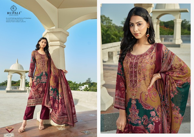 RUPALI ADHITRI contains superior Fabrics, with perfect craftsmanship makes it one most best quality suits catalogue. Best commitment to ungearing quality.