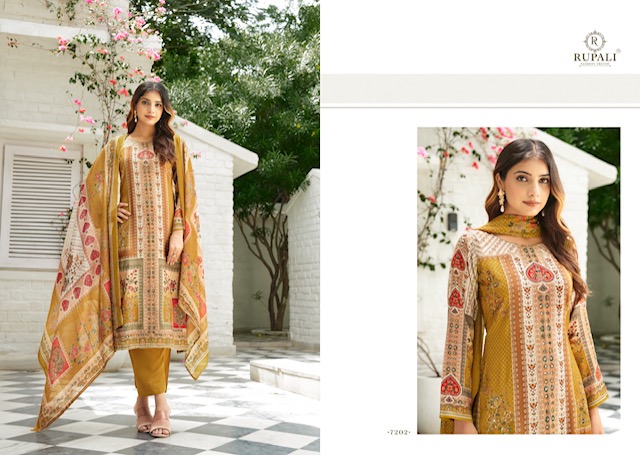 RUPALI FASHION ADHITRI contains superior Fabrics, with perfect craftsmanship makes it one most best quality suits catalogue. Best commitment to ungearing quality.