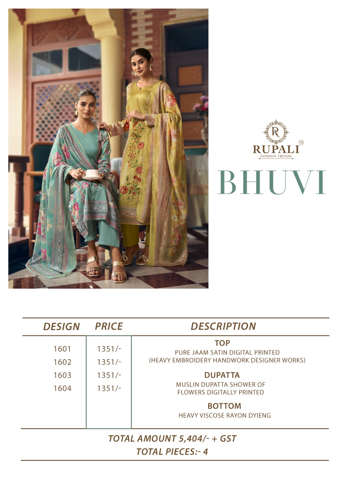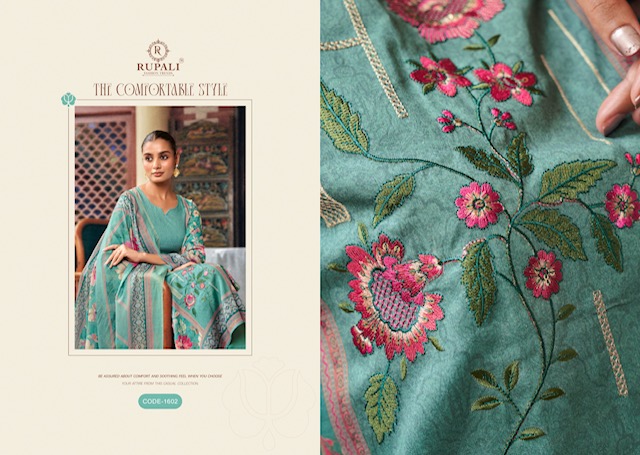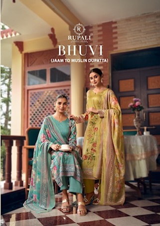 RUPALI FASHION BHUVI contains superior Fabrics, with perfect craftsmanship makes it one most best quality suits catalogue. Best commitment to ungearing quality.