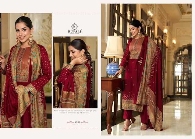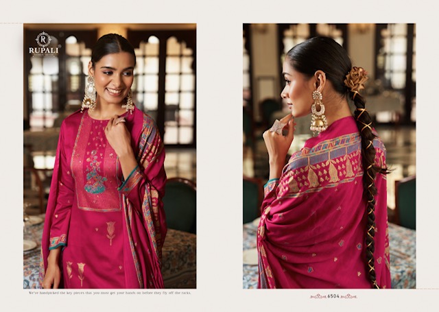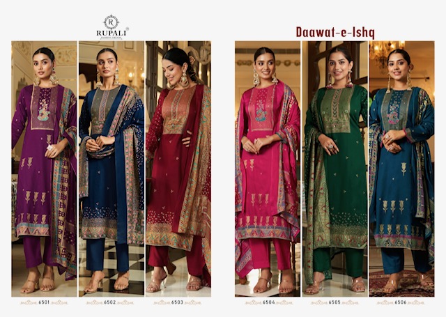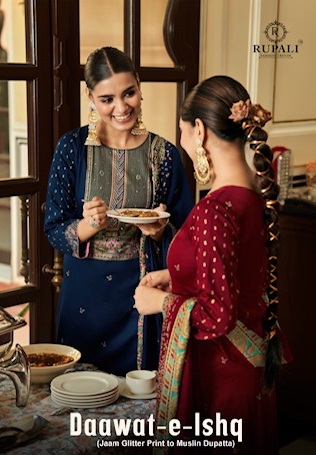 RUPALI FASHION DAAWAT E ISHQ contains superior Fabrics, with perfect craftsmanship makes it one most best quality suits catalogue. Best commitment to ungearing quality.