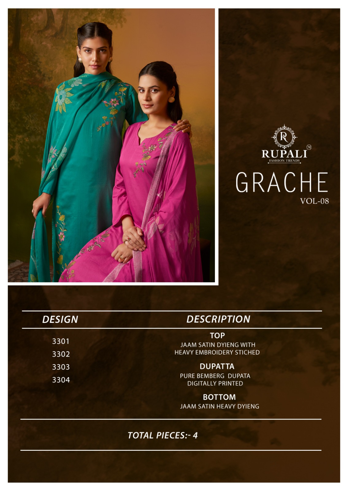 RUPALI FASHION GRACHE VOL 8 JAAM SATIN SUITS