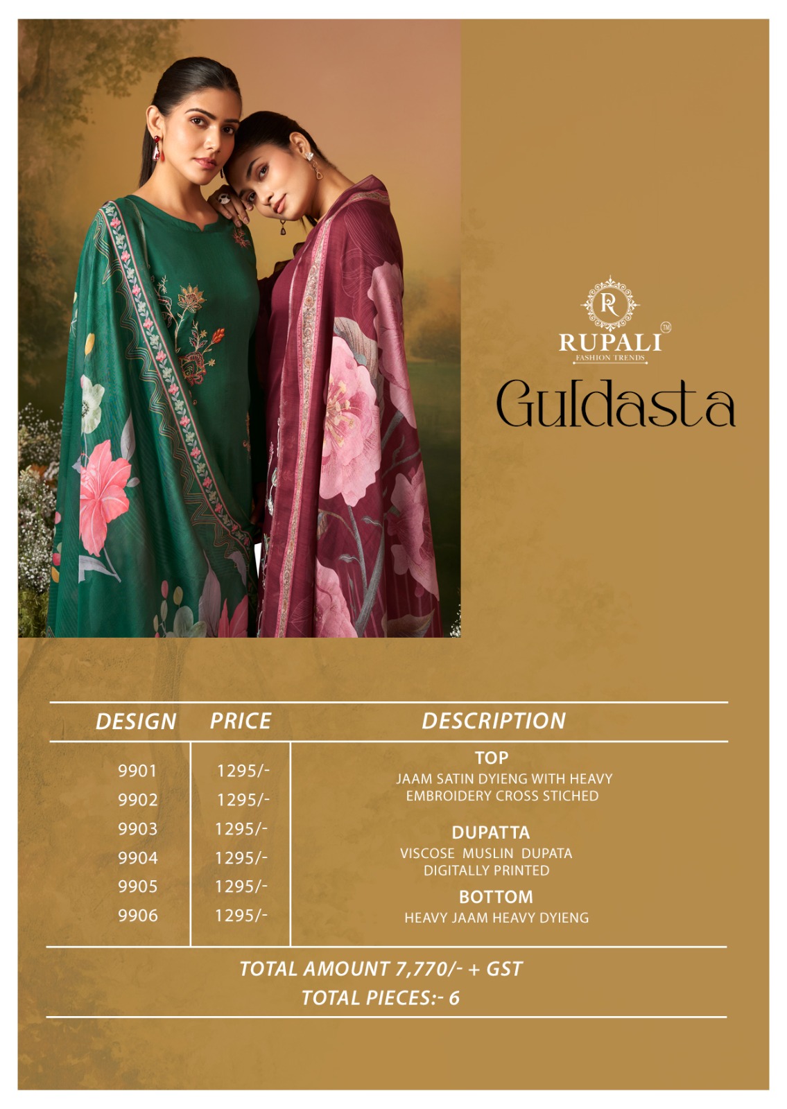 RUPALI FASHION GULDASTA JAAM SATIN SUITS SUPPLIER