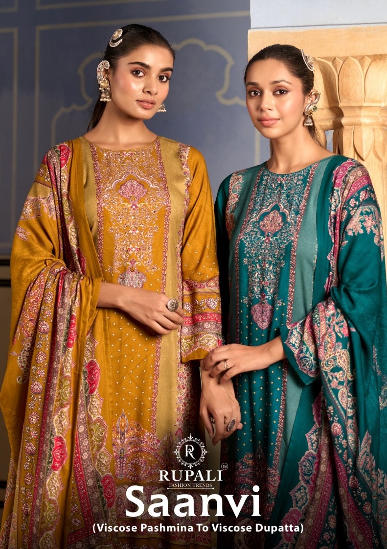 RUPALI FASHION SAANVI contains superior Fabrics, with perfect craftsmanship makes it one most best quality suits catalogue. Best commitment to ungearing quality.