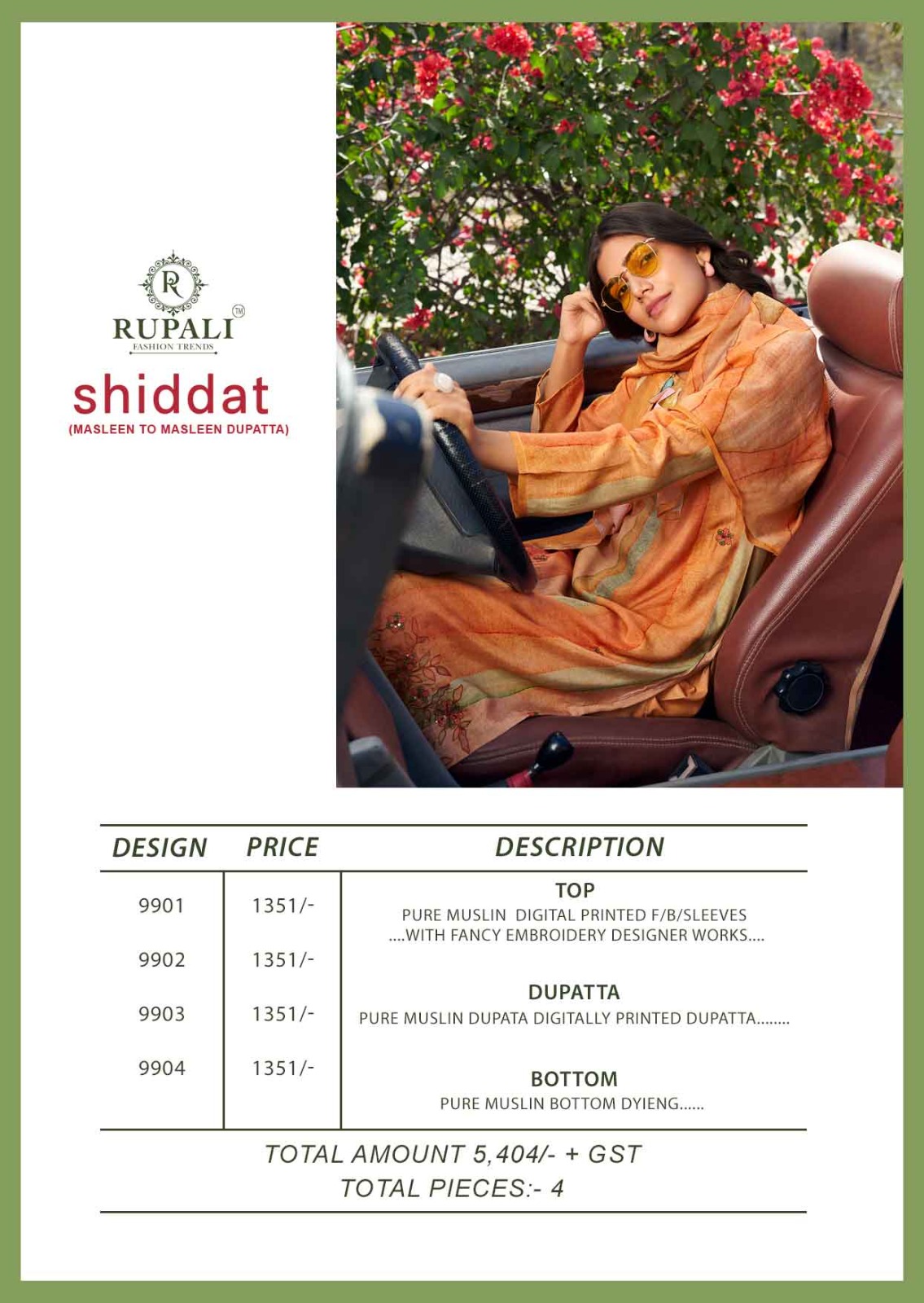 RUPALI FASHION SHIDDAT MUSLIN DIGITAL PRINTED SUITS