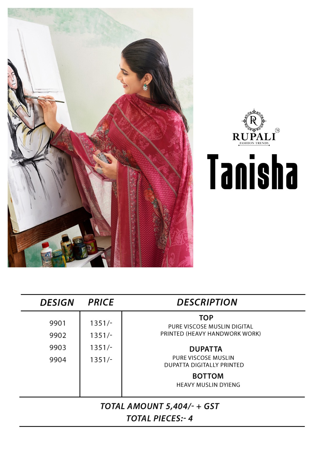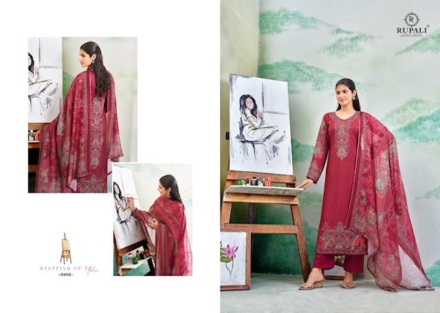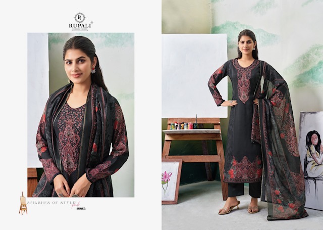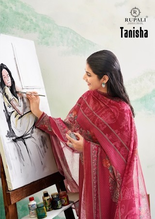 RUPALI FASHION TANISHA contains superior Fabrics, with perfect craftsmanship makes it one most best quality suits catalogue. Best commitment to ungearing quality.