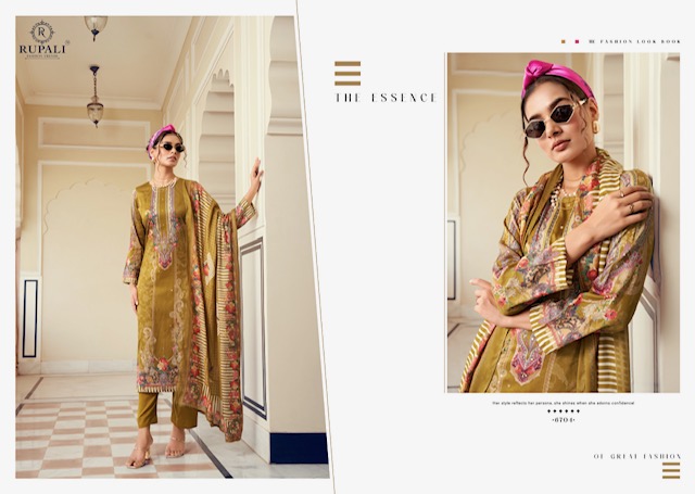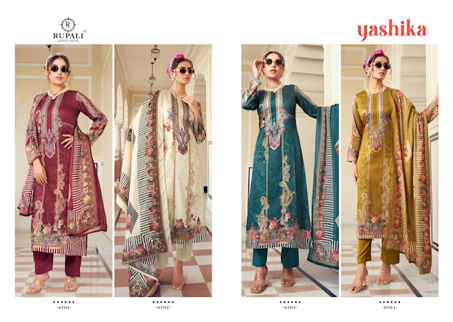 RUPALI FASHION YASHIKA contains superior Fabrics, with perfect craftsmanship makes it one most best quality suits catalogue. Best commitment to ungearing quality.