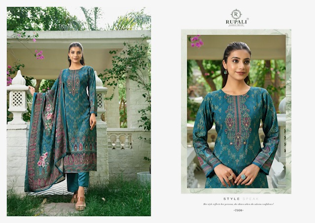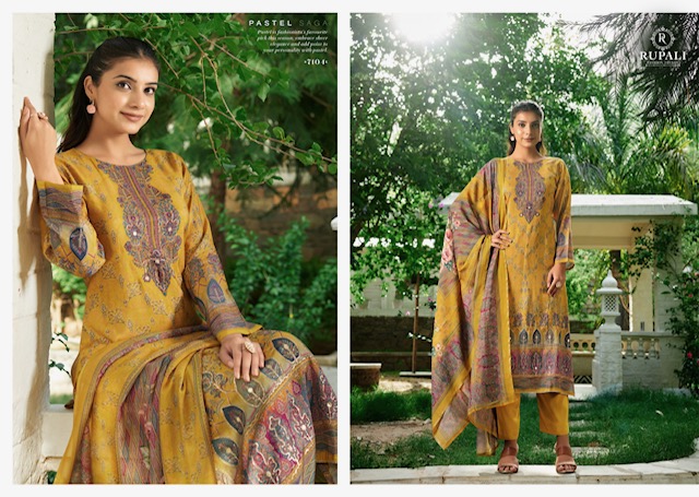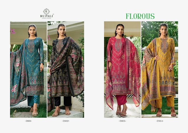 RUPALI FLOROUS contains superior Fabrics, with perfect craftsmanship makes it one most best quality suits catalogue. Best commitment to ungearing quality.