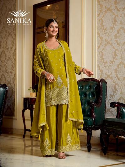 This catalogue contains design which contains both traditional beauty and modern twist. That celebrating India’s rich textile heritage. It Brings awareness and response to current events and cultural trends. Whether you are going for a party, a wedding, or simply it makes your wardrobe traditional, the Sanika Myra catalog chinon silk salwar kameez collection promises to add shade of beauty to your look. With vibrant prints, luxurious fabrics, and beautiful designs, each suit tells a story of style. Having or showing a lot of experience and knowledge about the world and about culture, art, literature, etc.