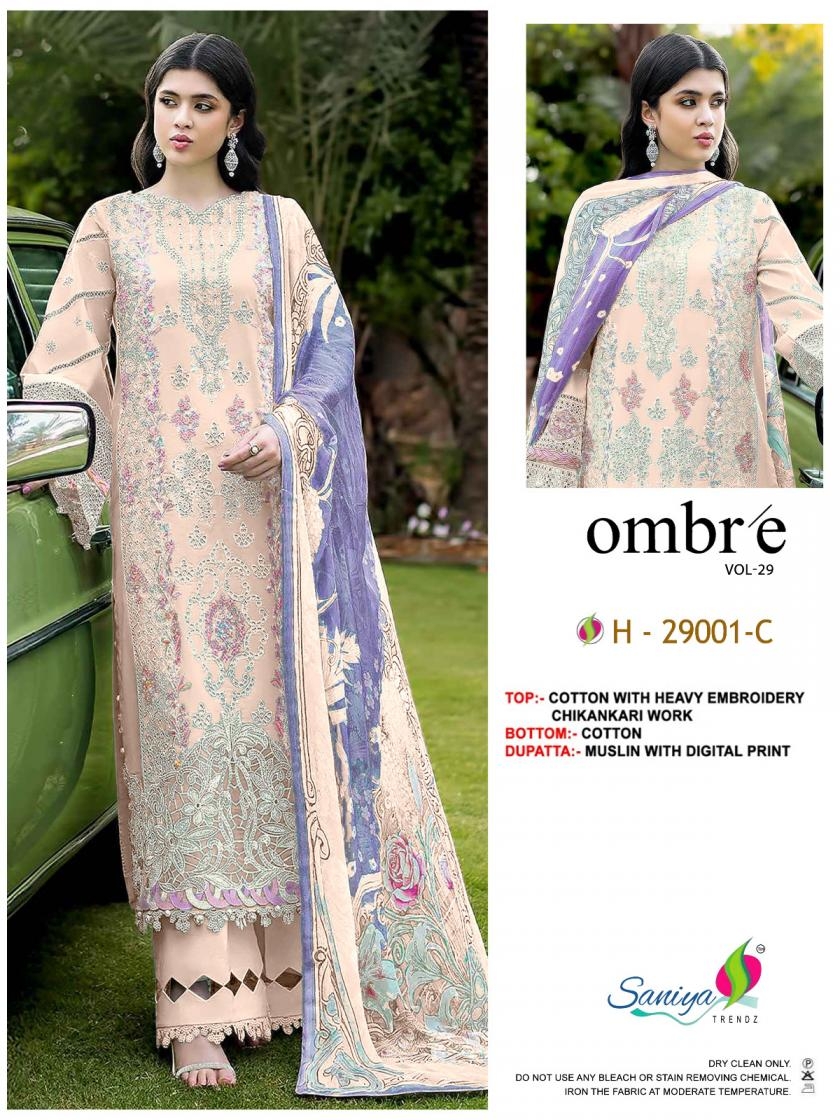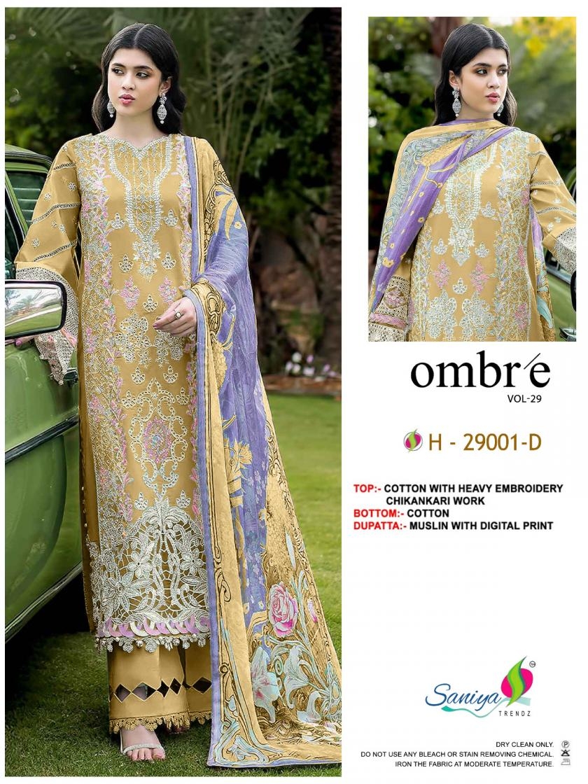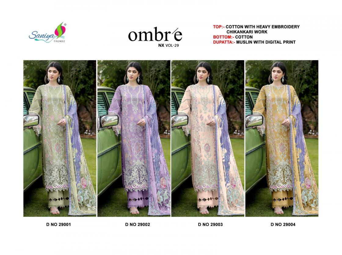 saniya trendz ombre nx vol 29 series 29001-29004 cotton pakistani unstitch suit: Where Traditional Beauty Meets stylish charm.