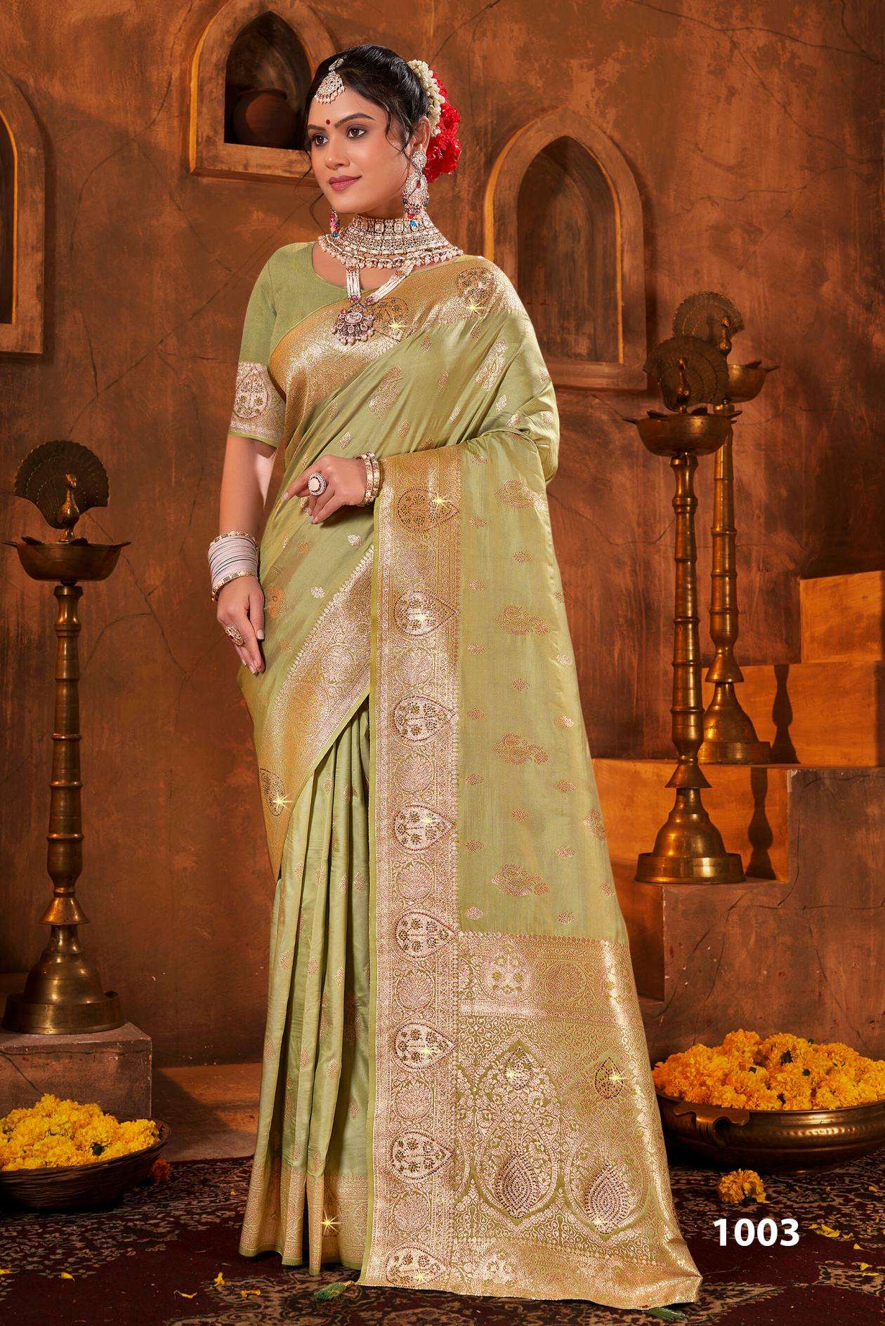 Saroj Tejasvi silk vol.3 series 1001 to 1004 50*600 Silk saree in wholesale surat has a suit design for every event, whether you are going for formal gathering or a casual get-together you can style the collection: