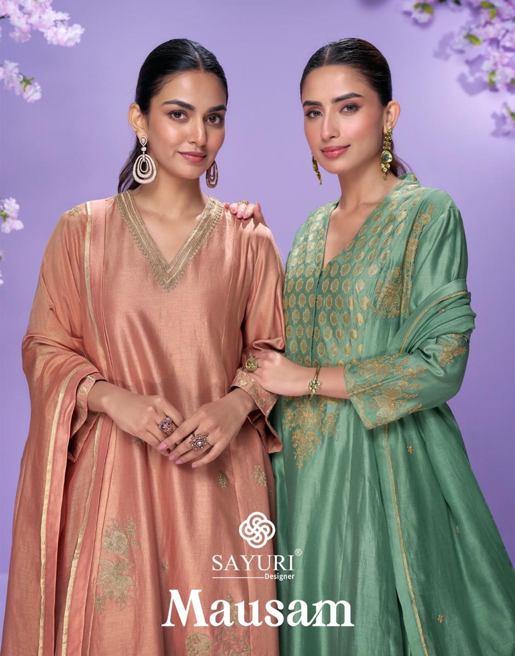SAYURI DESIGNER MAUSAM contains superior Fabrics, with perfect craftsmanship makes it one most best quality suits catalogue. Best commitment to ungearing quality.