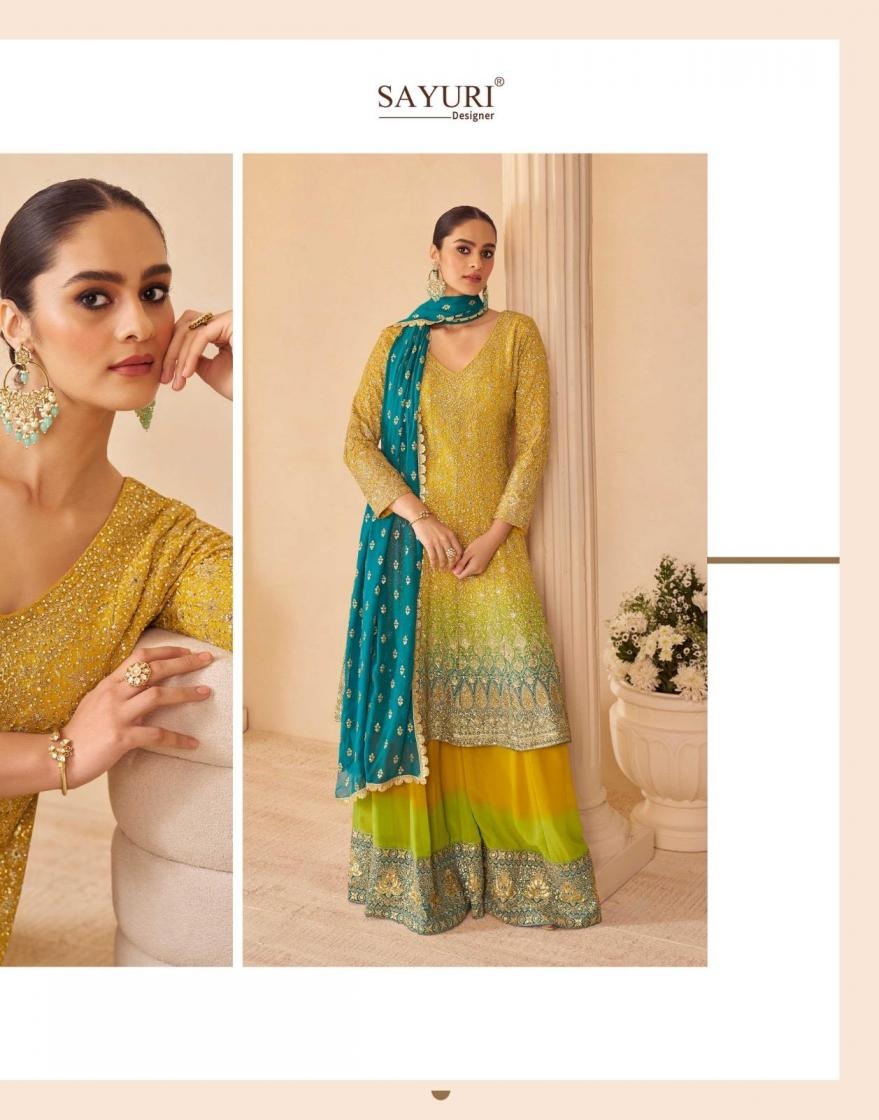 sayuri designer sandhya series 10148 to 10151 georgette readymade attractive look plazzo suits in wholesale surat: Where Traditional Beauty Meets stylish charm.