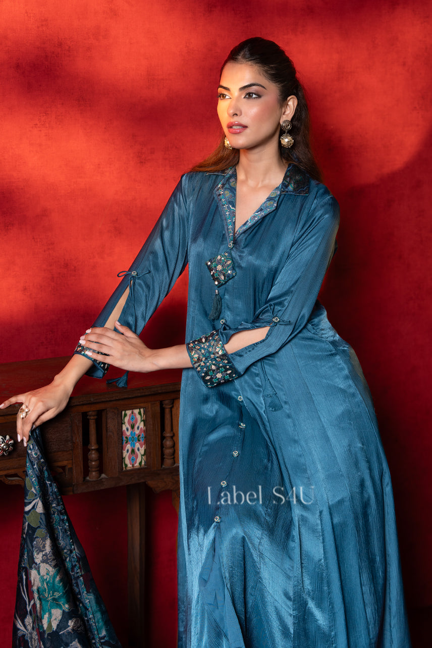 When it comes to traditional wear, quality truly plays and important role. Style never goes out of fashion. Blue Royale-Anarkali brings you a beautiful shade of style, design, and luxury that women have been loved for a long time.