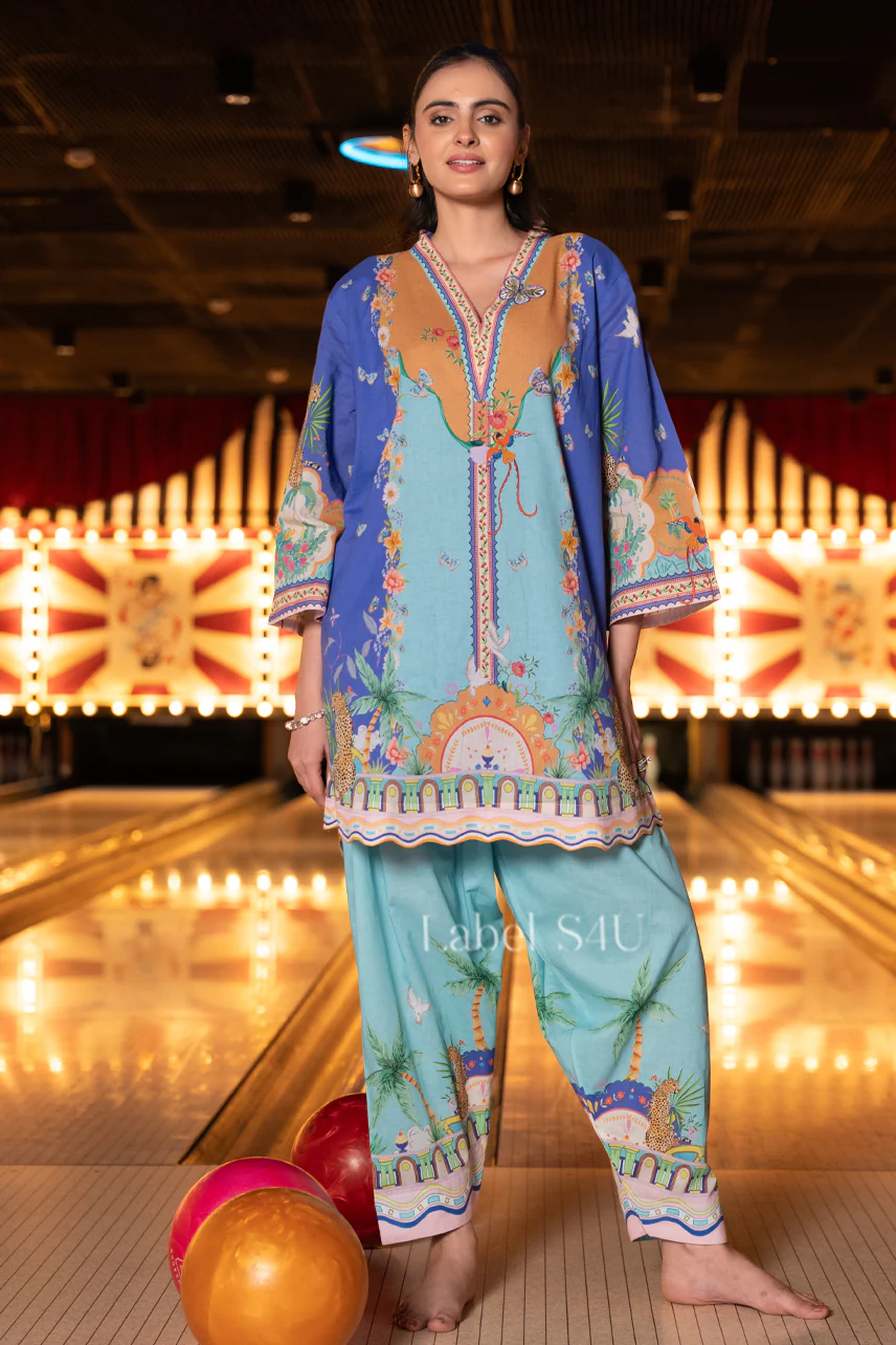 When it comes to traditional wear, quality truly plays and important role. Style never goes out of fashion. Blue Tropical Cotton-Co-ord Set brings you a beautiful shade of style, design, and luxury that women have been loved for a long time.