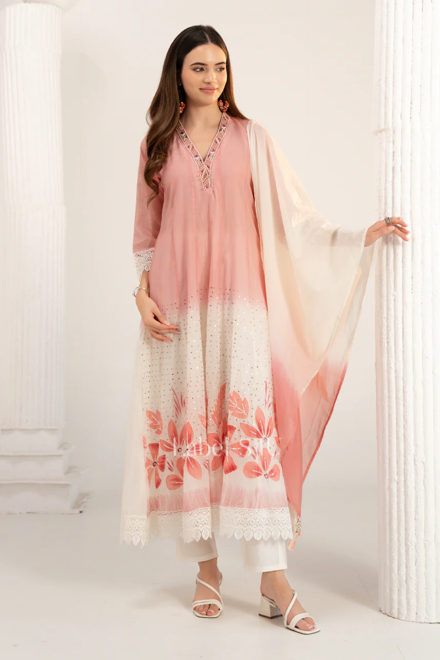 Finally, Fashion is not just clothing but it is much more than that. It is a way to express your identity. With Calm Peach Printed Anarkali Set, you are not just wearing a suit, but you will feel more confidence, heritage, and a rich story of craftsmanship that has been going through out generations.
