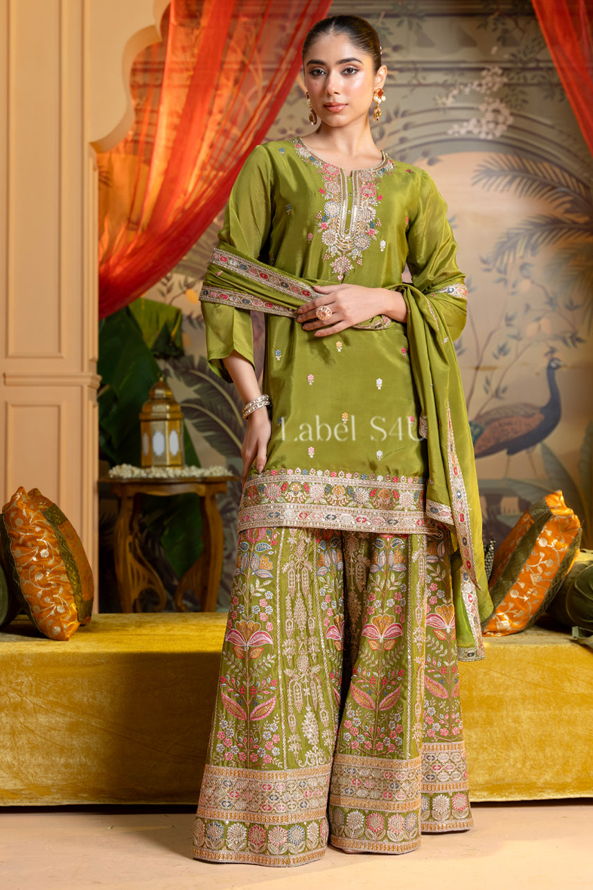 When it comes to traditional wear, quality truly plays and important role. Style never goes out of fashion. Olive Royale-Palazzo Set brings you a beautiful shade of style, design, and luxury that women have been loved for a long time.