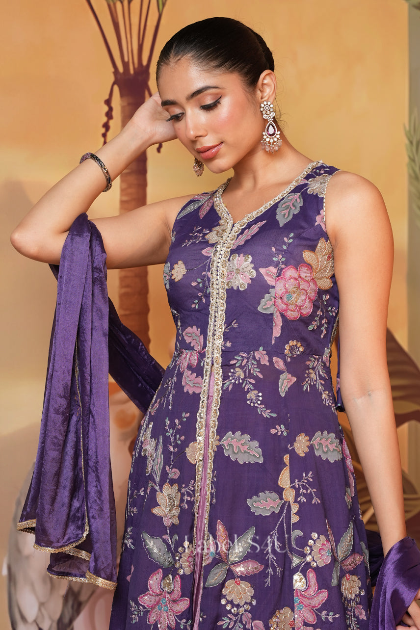 When it comes to traditional wear, quality truly plays and important role. Style never goes out of fashion. Purple Majesty-Center Slit Set brings you a beautiful shade of style, design, and luxury that women have been loved for a long time.