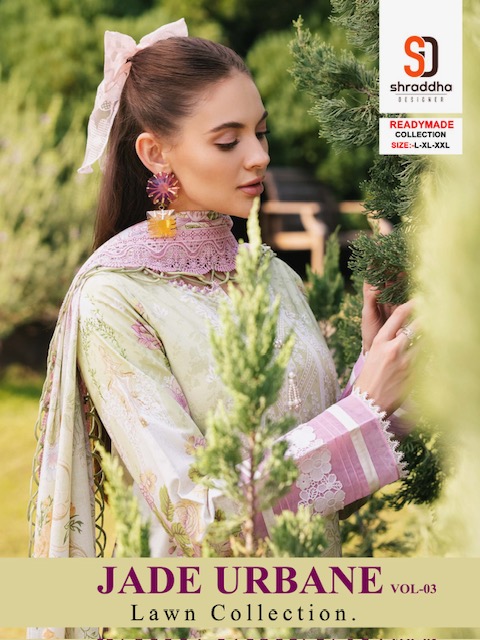 SHRADDHA DESIGNER JADE URBANE VOL 3 contains superior Fabrics, with perfect craftsmanship makes it one most best quality suits catalogue. Best commitment to ungearing quality.